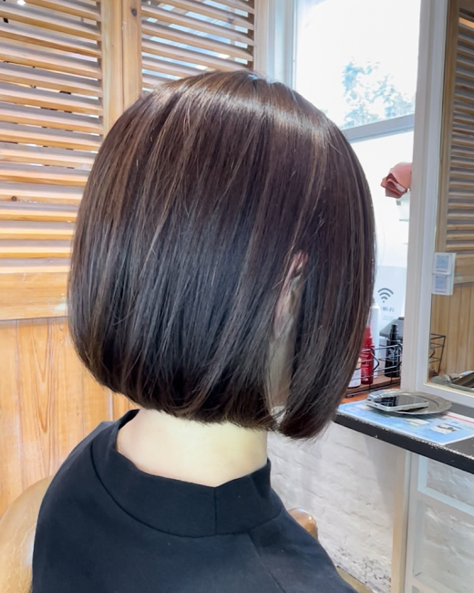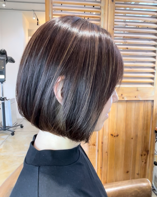 ボブのカチッとしたラインの中にフワッと見え隠れするハイライトがキレイです、