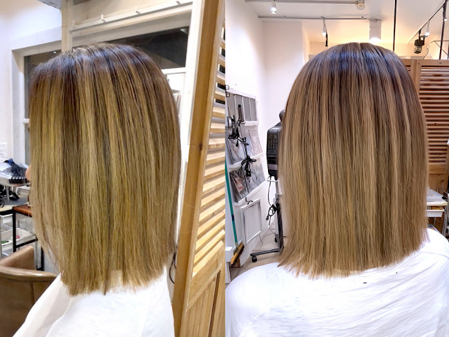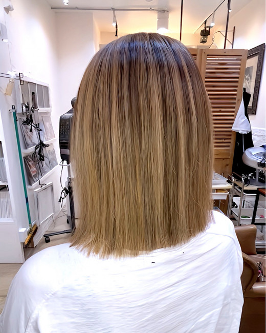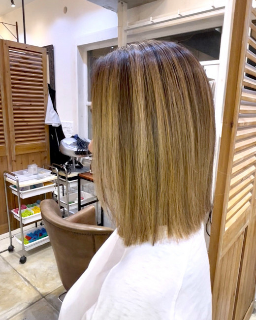 裾にたまるブリーチと上からのハイライトがGOODなバランスです。