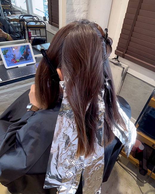 通常のハイライトとは違い複雑にハイライトを入れてキレイに見せていく技法を使っています。