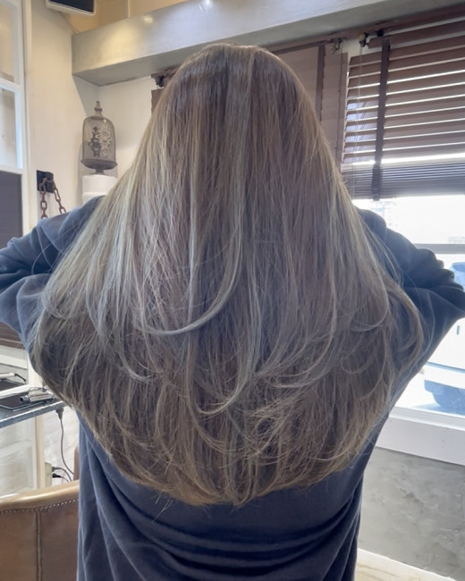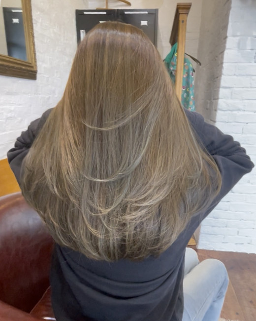 先程とは違い、髪全体が明るく見えレイヤーの雰囲気も全く別の様に見える。