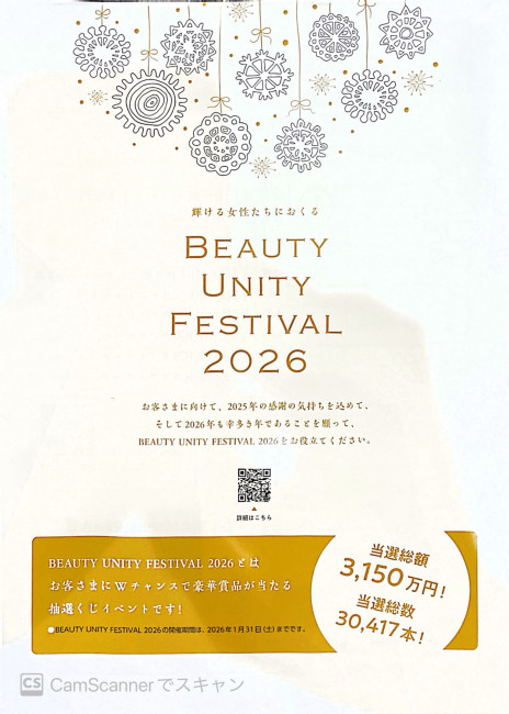 BEAUTY UNITY FESTIVAL 1月までおこなっております!